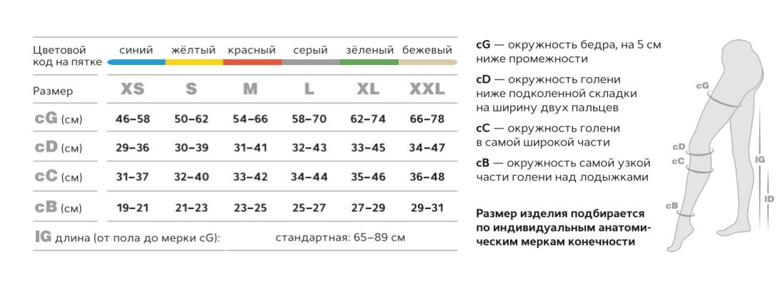 —цветовая индикация пятки соответствует определенному размеру;