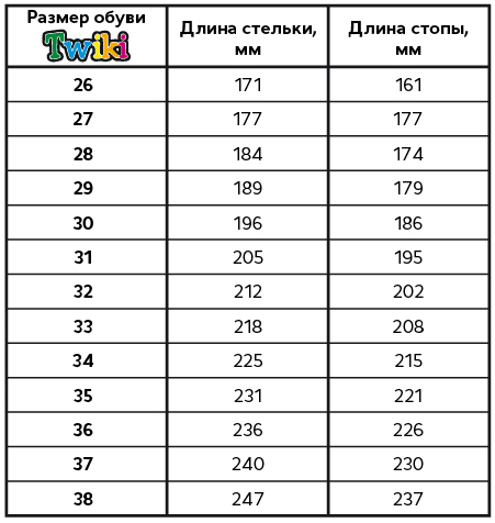 Таблица размеров