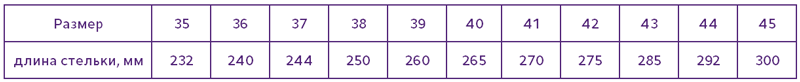 Таблица размеров