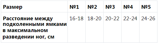 — Для определения размера, измерьте расстояние между подколенными ямками в положении отведения в тазобедренных суставах;